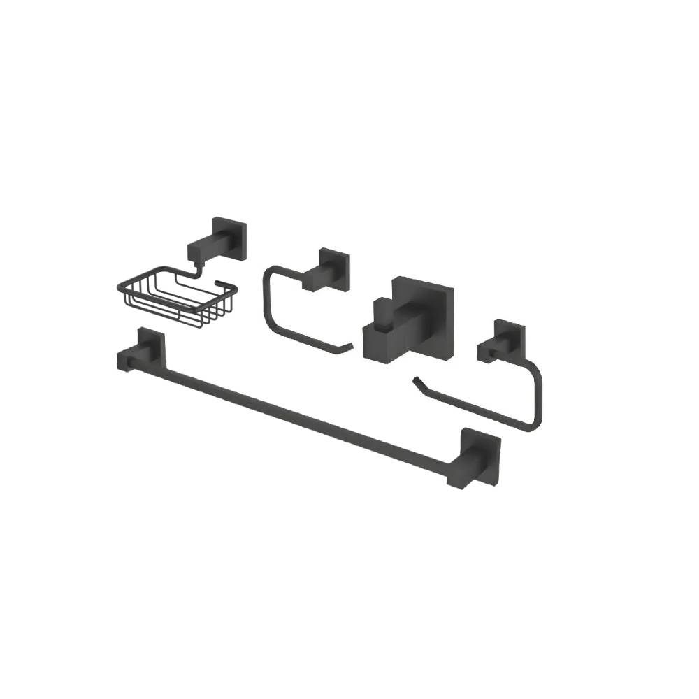 - Imagens meramente ilustrativas. O Kit de Acessórios Jiwi 5 Peças Quadrado Black é a escolha perfeita para quem busca unir modernidade, organização e sofisticação no banheiro.