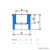 Bitola (mm) - 22x15, 28x15, 28x22, 35x15, 35x22, 35x28, 42x22, 42x28, 42x35, 54x28, 54x35, 54x42, 73x22, 73x35, 73x54, 89x54, 89x73, 114x73 e 114x89;