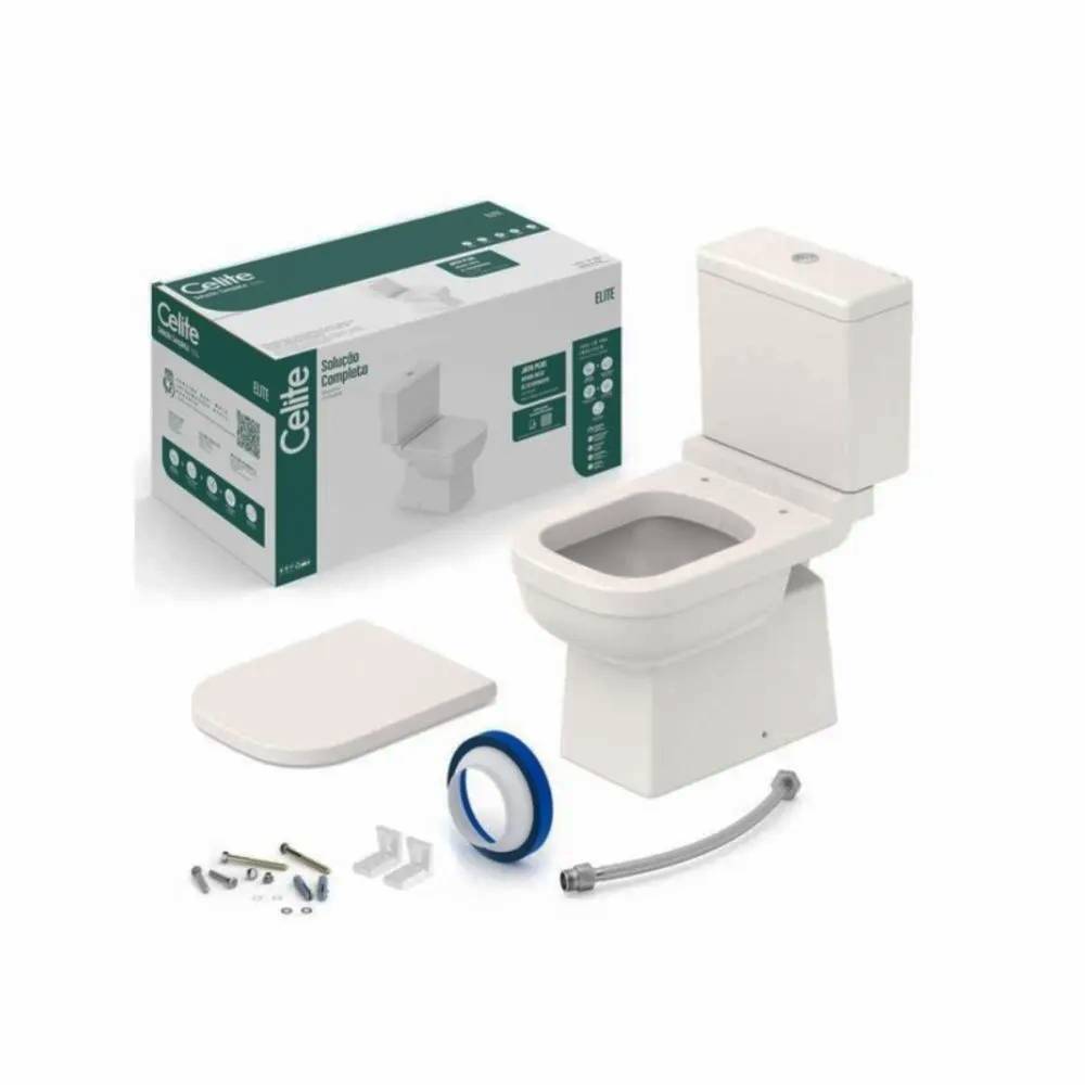 Kit Vaso Sanitário Caixa Acoplada Elite C/ Assento e Acessórios Beige - Celite |